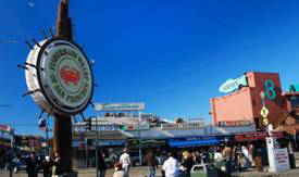 渔人码头是旧金山的象征之一,原是意大利渔民聚集的渔港,到了60年代,由于渔获量减少,才逐渐演变成观光景点。码头附近沿海盛产鲜美的海鲜,在码头边有很多摊子贩卖海鲜,并把螃蟹、鲜虾放在锅子中煮熟,这也是渔人码头的一景。