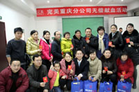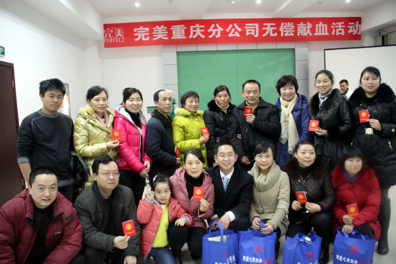 “第八届完美百城千店万人献血活动”虽已圆满结束,但此次分公司为缓解重庆冬季血荒而紧急组织地无偿献血活动仍得到了完美伙伴的积极响应。短短两个半小时,30位完美人成功献血,献血总量达9460毫升。