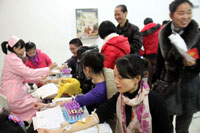 9:30,献血活动正式开始。在场的完美伙伴们纷纷卷起衣袖,献出自己宝贵的鲜血,同时也献出自己的一份爱心。在工作人员的指引下,大家排好队,领表、填表、体检、献血有条不紊地进行。瞧!有的完美伙伴全家总动员,一家老小,兄弟姐妹齐上阵;有的伙伴带上朋友、带上顾客,也一起来支援。一时间爱心洋溢,场面温馨感人!