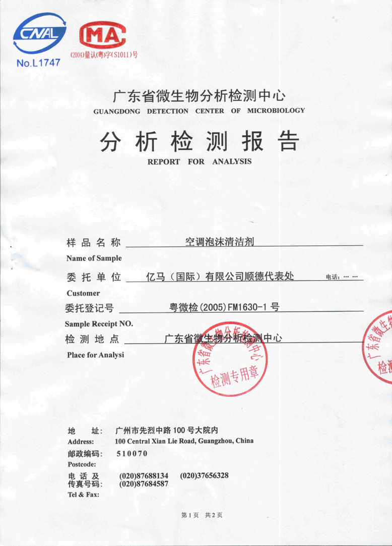 广东微生物分析检测中心关于空调泡沫清洁剂的检测