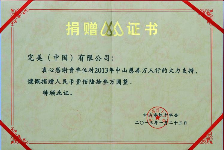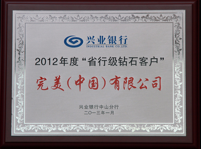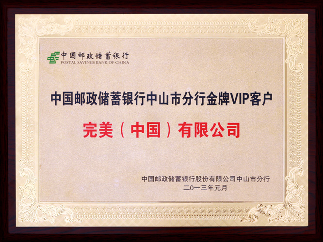 | 完美公司被评为中国邮政储蓄银行中山市分行金牌VIP客户 |