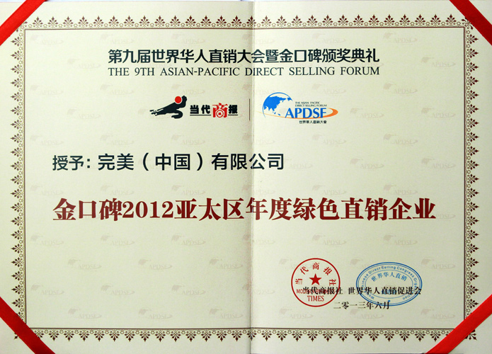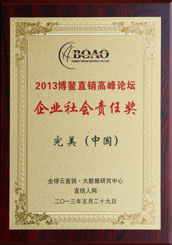 | 完美公司被授予2013年度中国食品安全年会十强企业 |