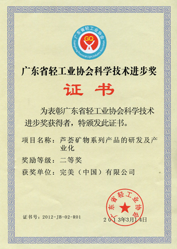 | 芦荟矿物系列产品的研发及产业化荣获广东省轻工业协会科技进步奖 |