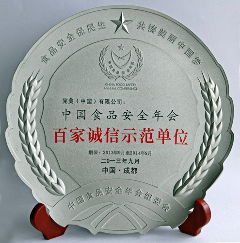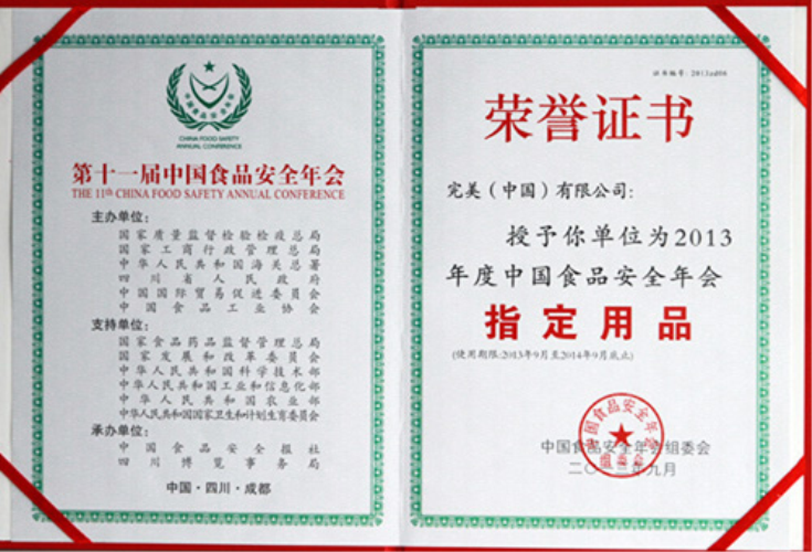 | 完美公司被授予2013年度中国食品安全年会指定用品 |