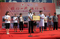 8月2日,完美公司第十届百城千店万人献血暨巾帼志愿者抗震救灾专场活动在兰州东方红广场隆重拉开帷幕。甘肃省血液中心副主任张支凤、兰州市妇联副主席桑敏、完美甘肃分公司负责人王沂彦高级经理出席本次活动,现场参与的伙伴手系黄丝带,在为灾区祈福的同时,也积极参与无偿献血活动。本次活动,成功献血55人,献血总量达16,400毫升。