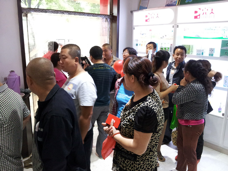 2013年7月13日,山西省介休市晋晖日用品商行门前一派热闹景象,连续一星期的大雨也阻挡不了伙伴们的一片热情,上百人冒着大雨聚集在一起,人们怀着激动的心情,脸上挂着善良的微笑,带着亲朋好友出席本次活动。