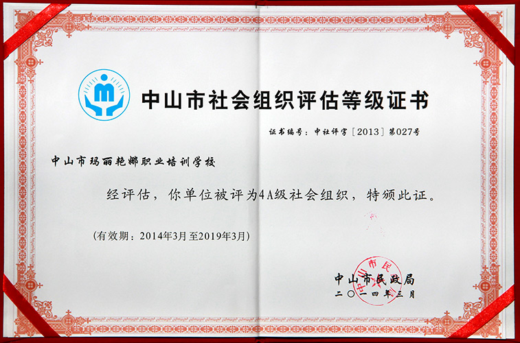 | 玛丽艳娜职业培训学校荣获中山市4A级(证书) |