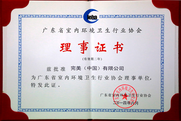 | 广东省室内环境卫生行业协会理事(牌匾) |