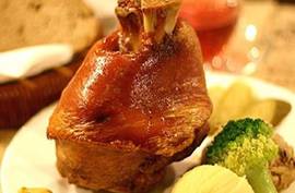 把猪脚上面的腿部用佐料腌制,再放入烤炉用旺火烤得皮脆肉嫩,呈金黄色时出炉。因为脆皮猪肘是很油腻的菜肴,一般的饭店里都会为脆皮猪肘另配上生菜色拉或酸白菜,德国酸菜(德文:Sauerkraut)是德国的传统食品,用圆白菜或大头菜腌制。酸菜能开胃、帮助消化,尤其是与份量不算少的德国肉类套餐搭配时,更能降低菜肴的油腻感,让每一口都能保持鲜嫩的美味。