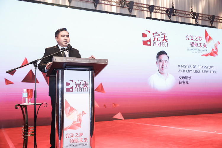 •  ● 中国驻马来西亚大使馆临时代办陈辰、马来西亚财政部长林冠英、交通部长陆兆福、中国检验认证集团马来西亚有限公司总经理付军、旅游部秘书长拿督拉希迪、马来西亚会展局CEO拿督朱基菲、广东省驻东南亚(吉隆坡)经贸办事处(广东省办事处)主任李敬、马中文化协会副会长拿督斯里蔡宝强、马留华同学会会长莫泽林等出席晚宴,与古润金董事长、胡瑞连总裁亲切合影。