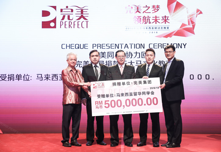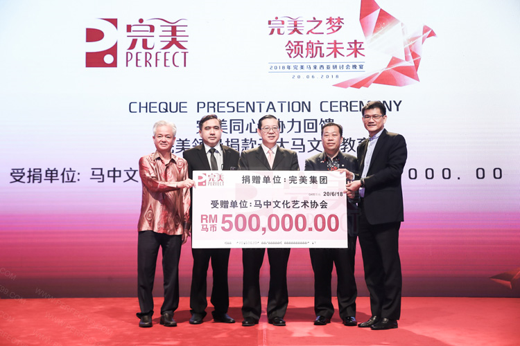 •  ● 完美公司向马中文化艺术协会捐赠善款50万马币。