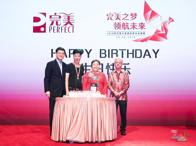 •  ● 完美公司董事长古润金、总裁胡瑞连为2位完美优秀客户总监庆祝生日。