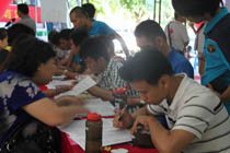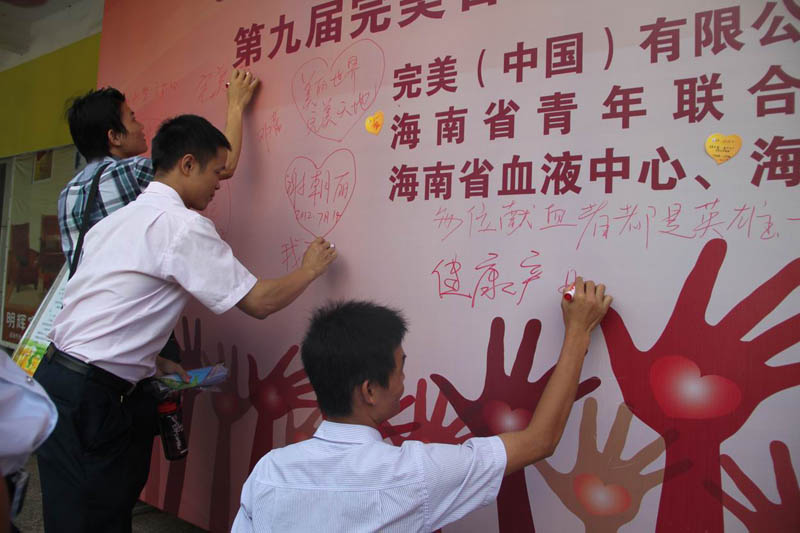 八点半,一切准备就绪,活动正式开始。在一楼填表区,大家咨询着献血时的注意事项,并认真填写表格;体检区,大家有序地进行体检及血液初筛;在采血车上,完美人的浓浓情意正通过一根根采血管,汇集到采血袋中。看到积极参与,热情洋溢的完美人,海南省血液中心的医务人员说,完美人的无私奉献给血液中心提供了有力帮助,给社会做出了一份贡献。活动现场,前来进行采访报道的《国际旅游岛商报》和《海口晚报》的两位记者,被现场完美人的精神所感召,经过填表体检后成功献血,献上了自己的一份爱心。
