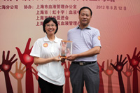 黄浦区血液管理办公室吴伟铭主任向完美上海分公司颁发致谢铭 |