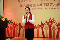 9点整,献血启动仪式在分公司大会议举行,山东省血液中心的赵炳旺主任亲临现场并致辞,在众多的媒体面前,赵主任开始细数完美公司公益事业,并且盛赞完美献血活动作为七大公益体系给山东献血事业带来的影响,并且他还很幽默的介绍完美公司和完美产品,使得现场笑声不断,赵主任也俨然成了完美的形象代言人。并且赵主任还代表山东省血液中心、山东省献血办公室为完美山东分公司颁发了“完美有情 大爱无疆”的锦旗,这也是对完美公司长期以来坚持无偿献血活动事业的最大的肯定,分公司行政主任耿学花女士代表公司接受锦旗并讲话。仪式还表彰了为组织此次活动表现突出的专卖店。
