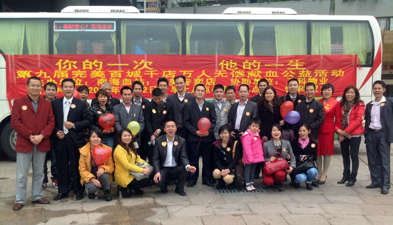 完美人热情满怀带着爱心而来,高高兴兴带着微笑而归,献血活动结束后,佛山市南海中心血站领导为所有参加献血人员赠送纪念品,分别为参与专卖店颁发“2012年完美爱心无偿献血感谢函”并集体合影留念。 |