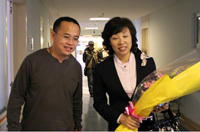 | 完美海南分公司经理干洪涛与王一诺总监正在前往病房探望符老先生 |