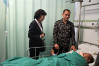 由于有了充足的血液,符老伯手术非常成功,病情也得到了控制。得知符老伯病情有所好转,并于24号下午从ICU重症监护室转到加护病房,完美海南分公司干洪涛经理、王一诺总监以及当时为符老伯成功献血的部分完美伙伴来到海口市人民医院骨科病房看望符老伯。