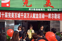 9月25日,新疆库尔勒专卖店在完美公司的带领下成功举办“第十届完美百城千店万人献血活动库尔勒站”。 915006专卖店店主孙灵敏组织库尔勒所有专卖店员工以及客户参加了无偿献血活动。当天有56名完美爱心人士成功献血14,000毫升,在一定程度上缓解了库尔勒血库的“血荒”问题。这次活动,得到了库尔勒市血站领导的高度赞赏,库尔勒市血站领导在活动现场宣布,将库尔勒市915006、915057、915068专卖店设为无偿献血宣传服务站,做好无偿献血宣传工作及无偿献血志愿者的报名工作,为新疆的无偿献血事业出一份力量。